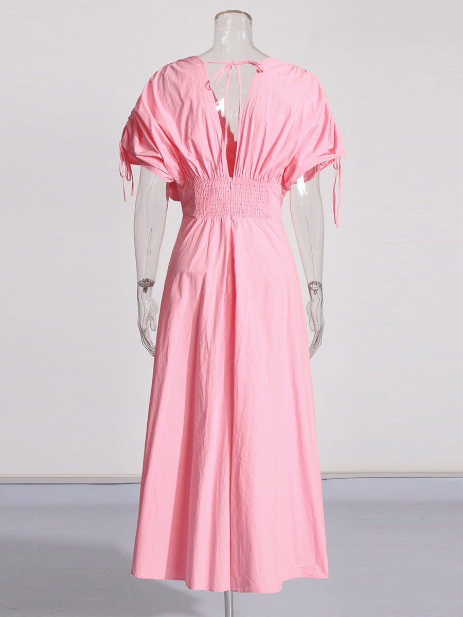 Tea Rest Temperament Elegant Style Dress 2025 Summer New V Collar Paste Splicing A Word Long Dress Dress Woman