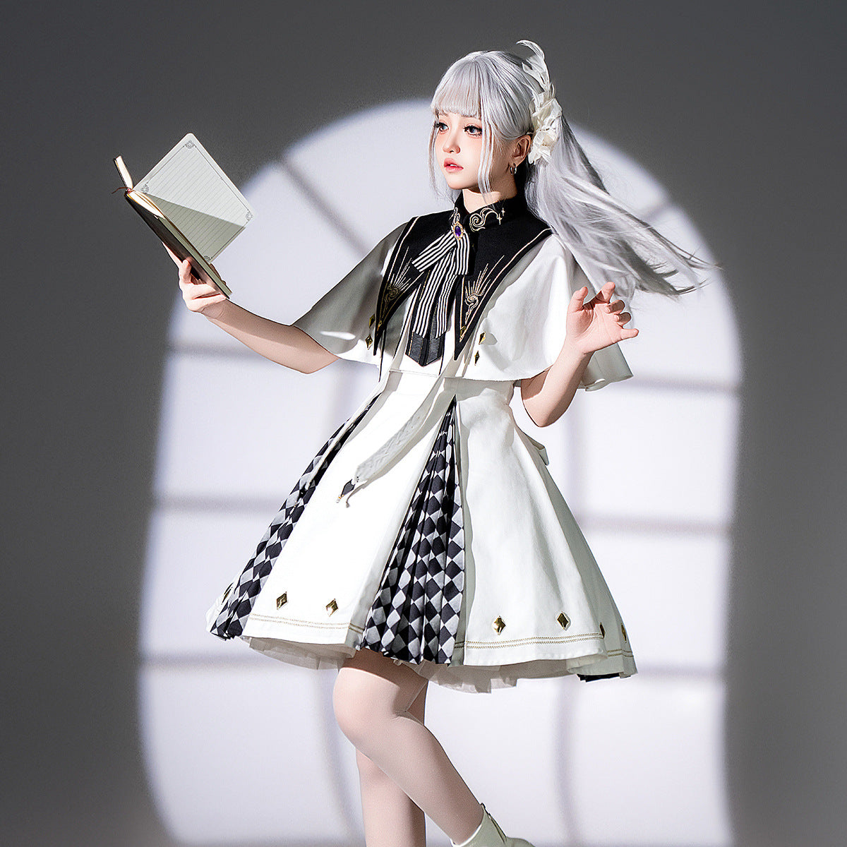 Teased Original Real Eye Lolita Female Lolita Fake Collared Cloaked Sling Skirt Daily Suit 7284