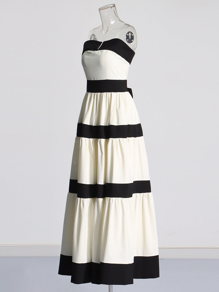 Temperament Elegant Goddess Style Dress Dress 2025 Spring New Braming Striped Bow Dress Woman