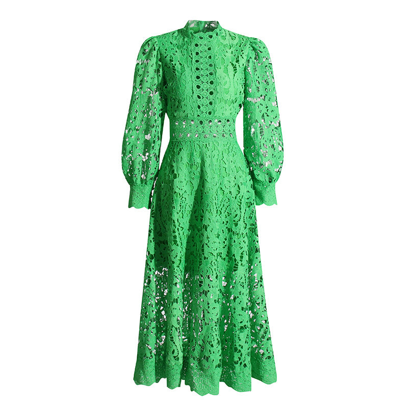 Temperament Elegant Lace Dress 2025 Summer New Bubble Sleeve Long Sleeve Embroidered Dress Woman