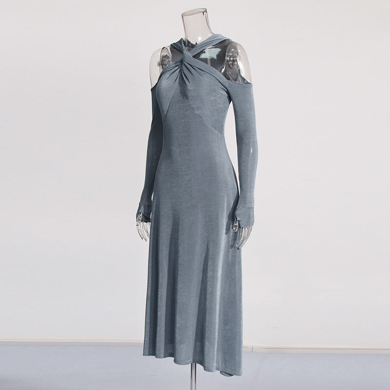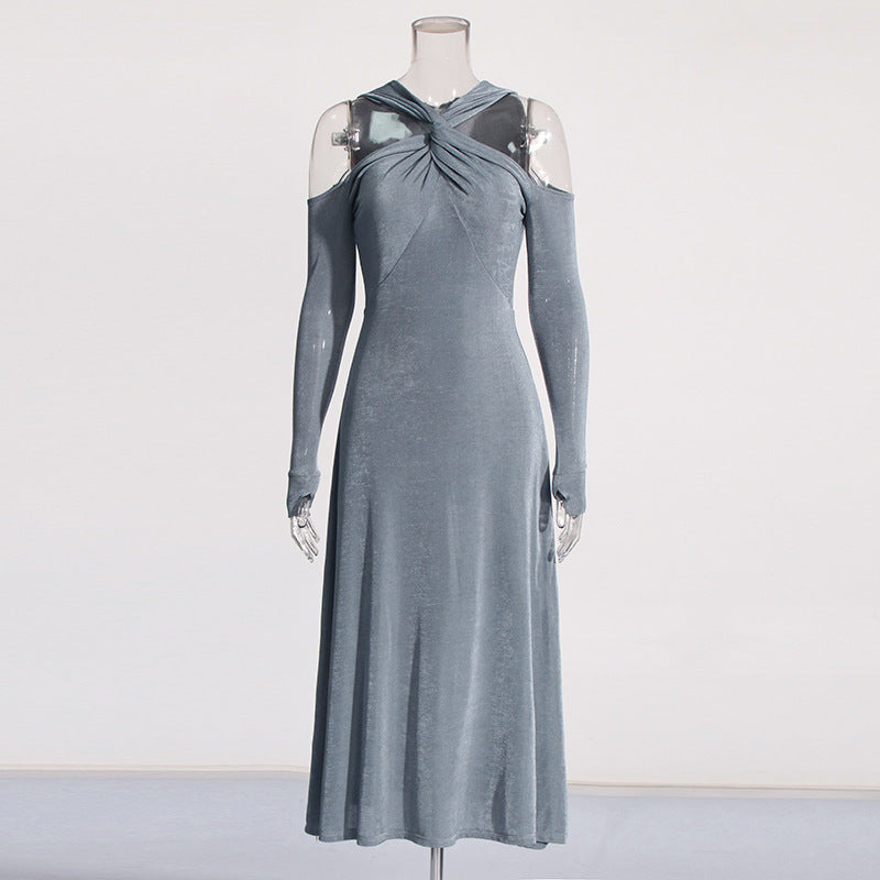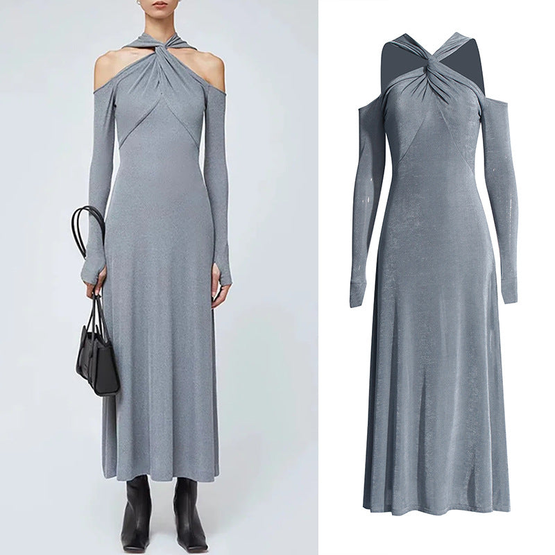Temperament Elegant Wind 2025 Summer New Cross-Necked Shoulder Knot Design Dress Dress Woman
