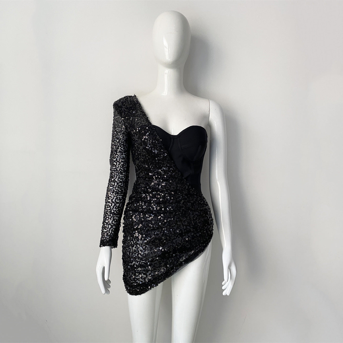 Thin Mesh Shading Lint Long Sleeves With High-Waisted Solid Color Temperament Slim Bandid Dress