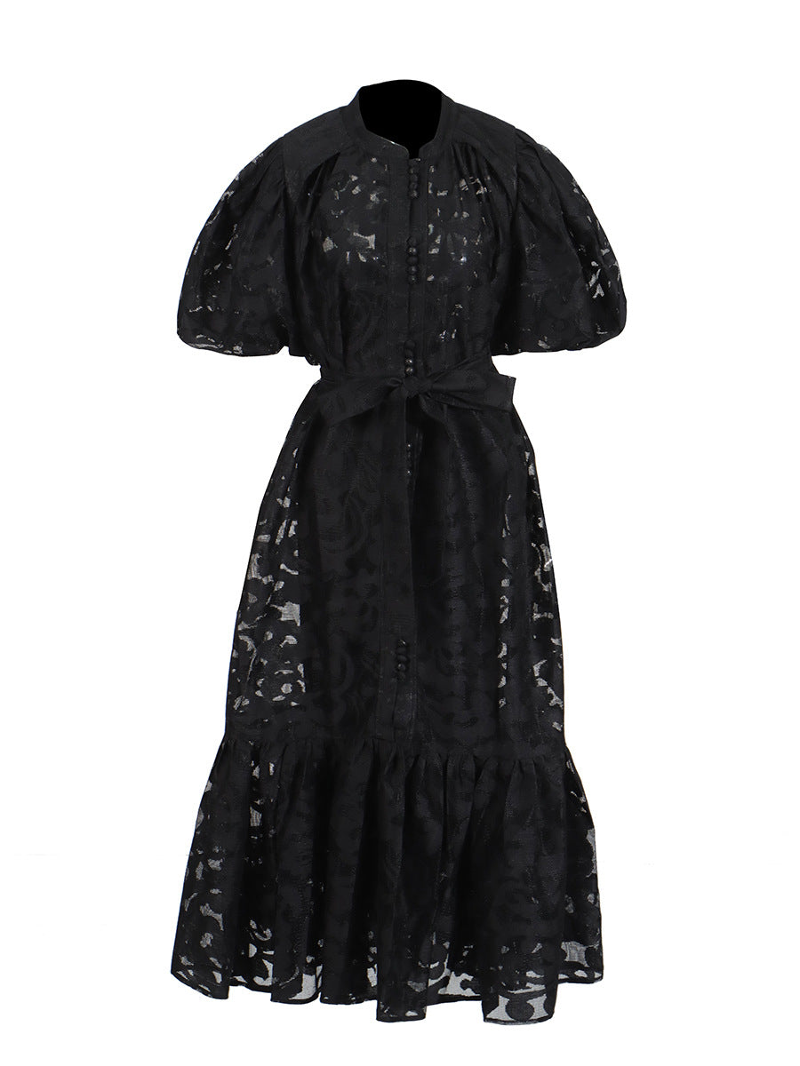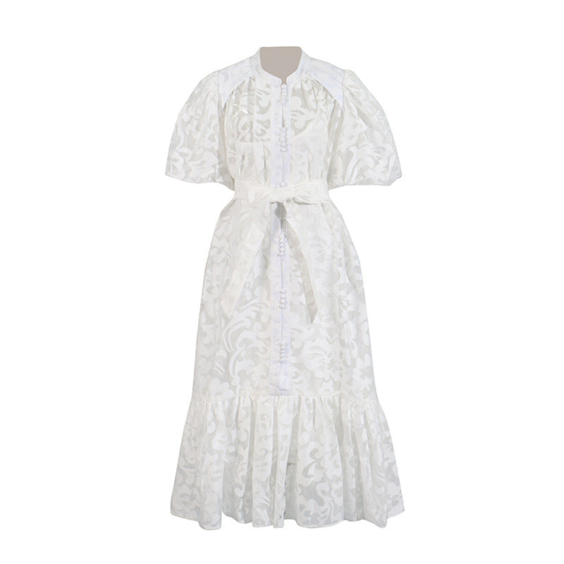 Vintage Elegant Dress 2025 Summer New Single-Rebutted Embroidered Printed Dress With Short Sleeve Dress Woman