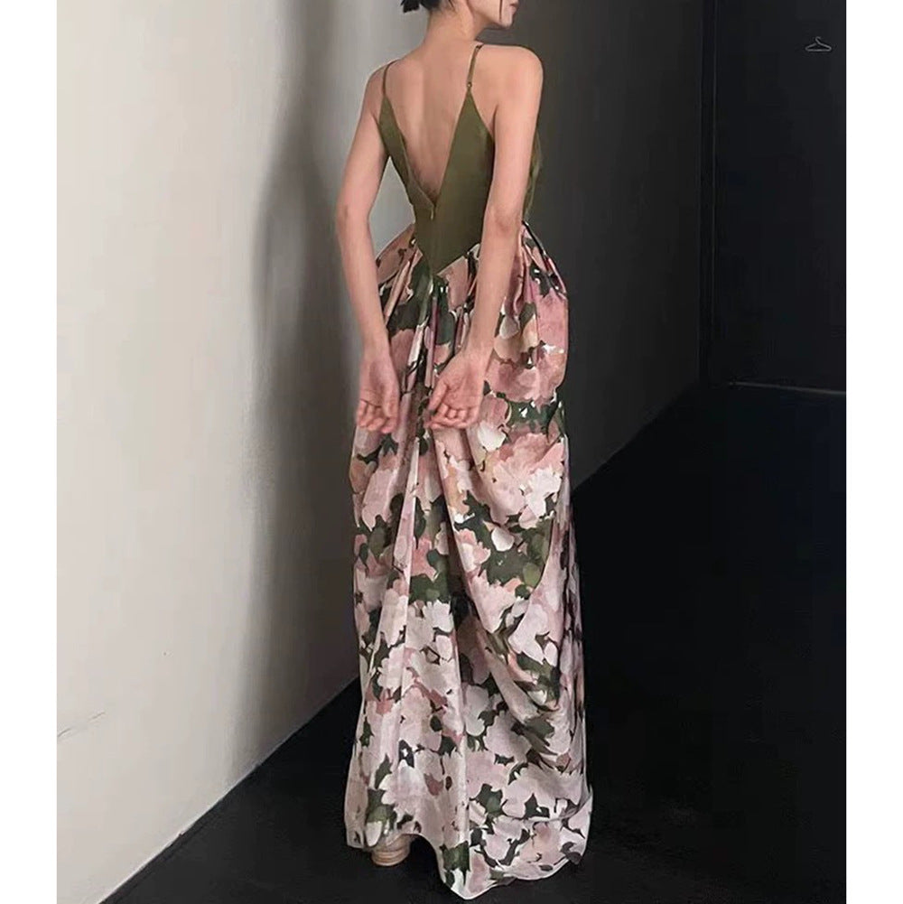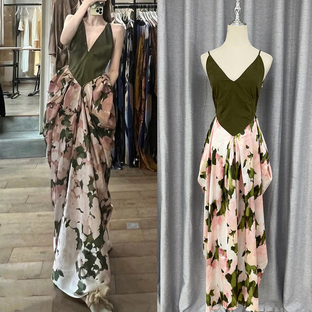Vintage Elegant Magnolia V-Neck Dress 2024 New High-End Temperament Showback Dress
