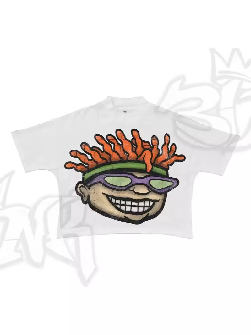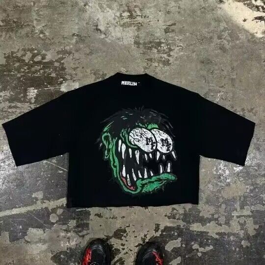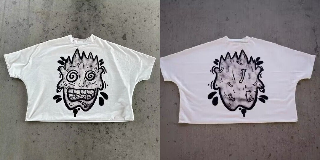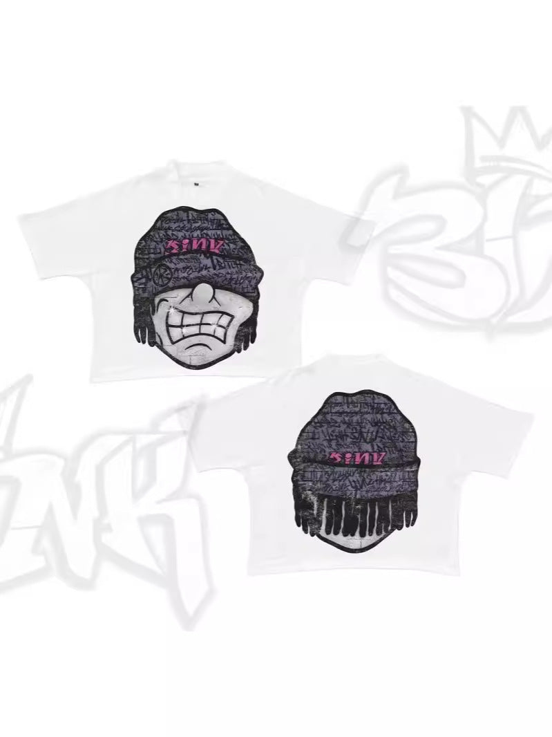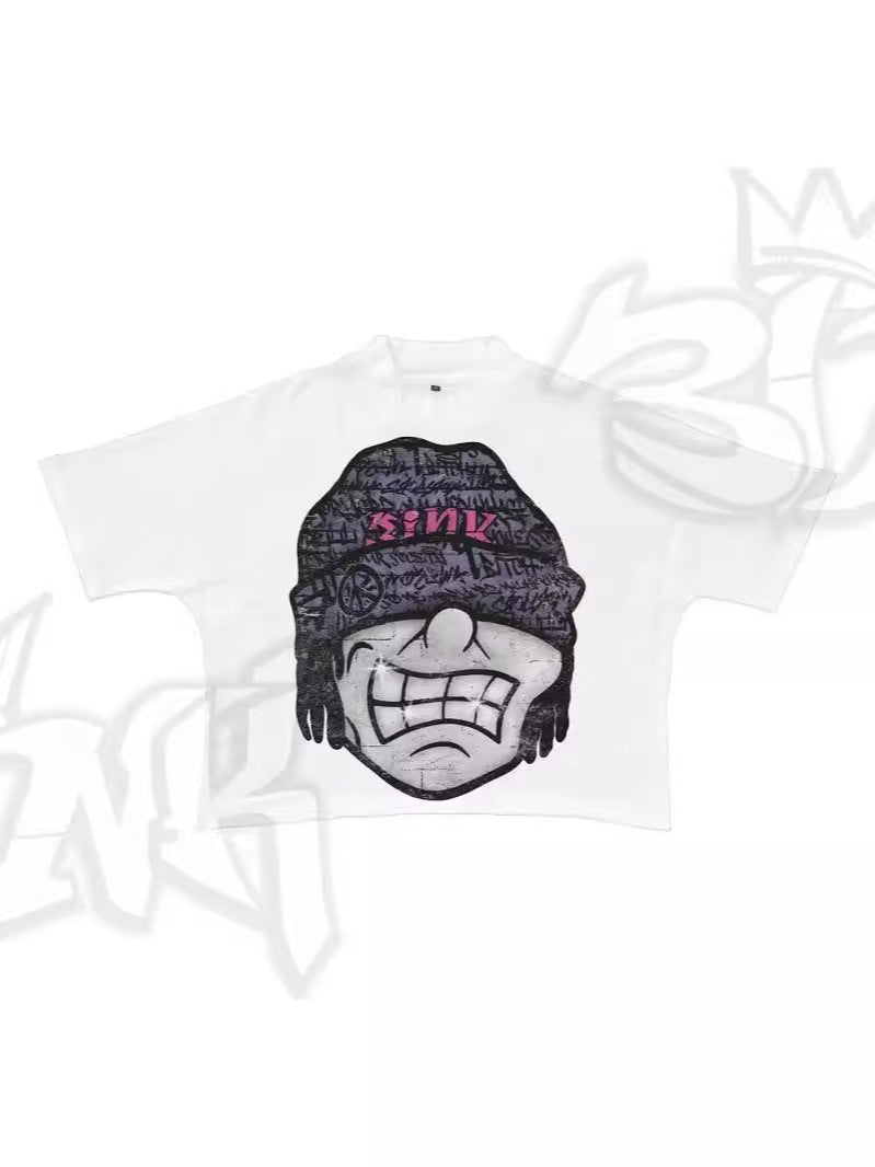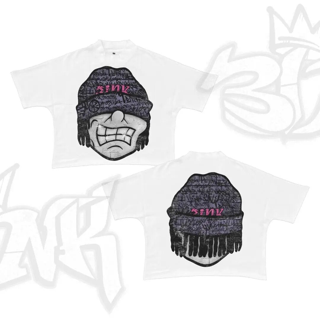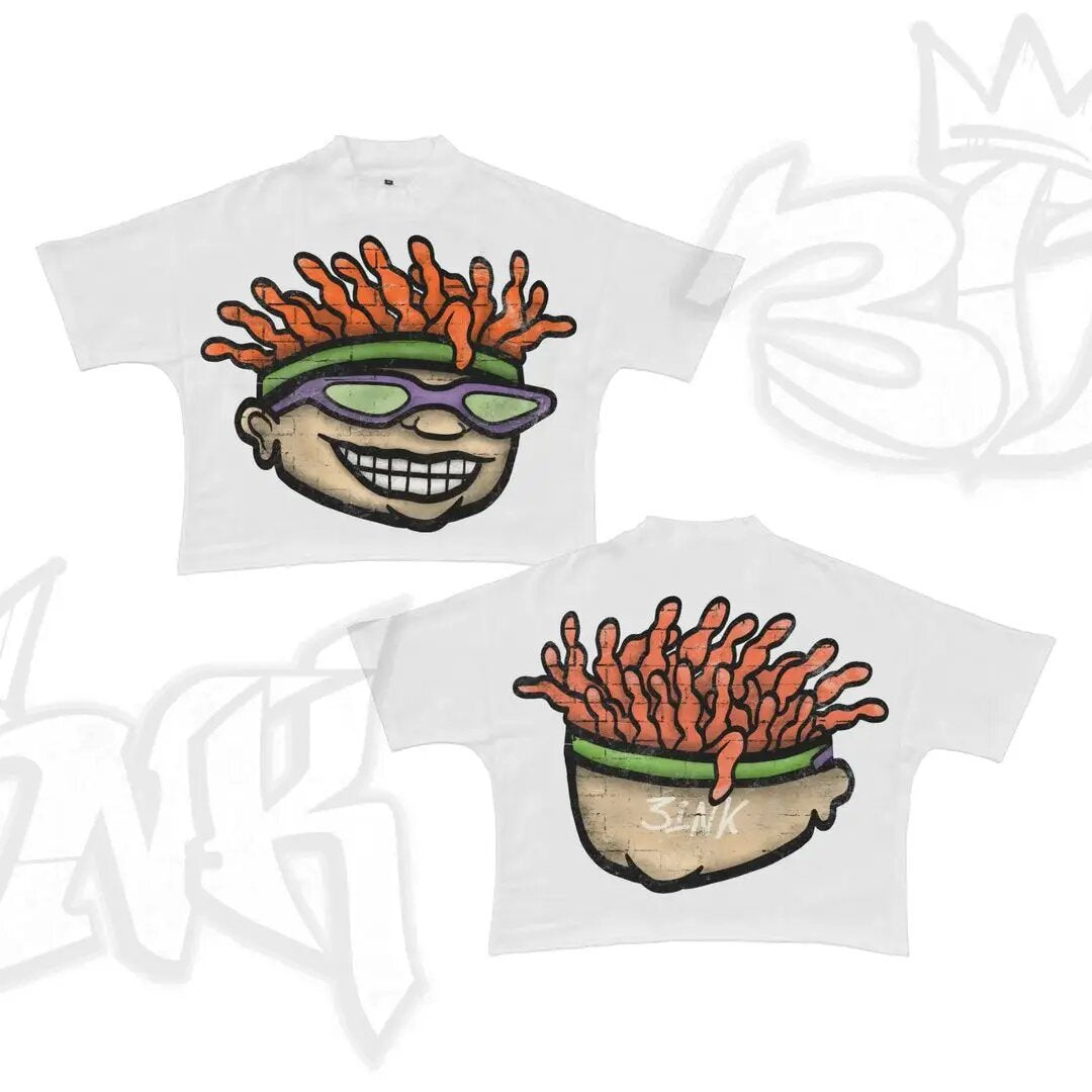 Vintage Men Cartoon H-Hang H-Hang PK T-Shirt American Kawai Long Dress Y2K Short Sleeves DJPT