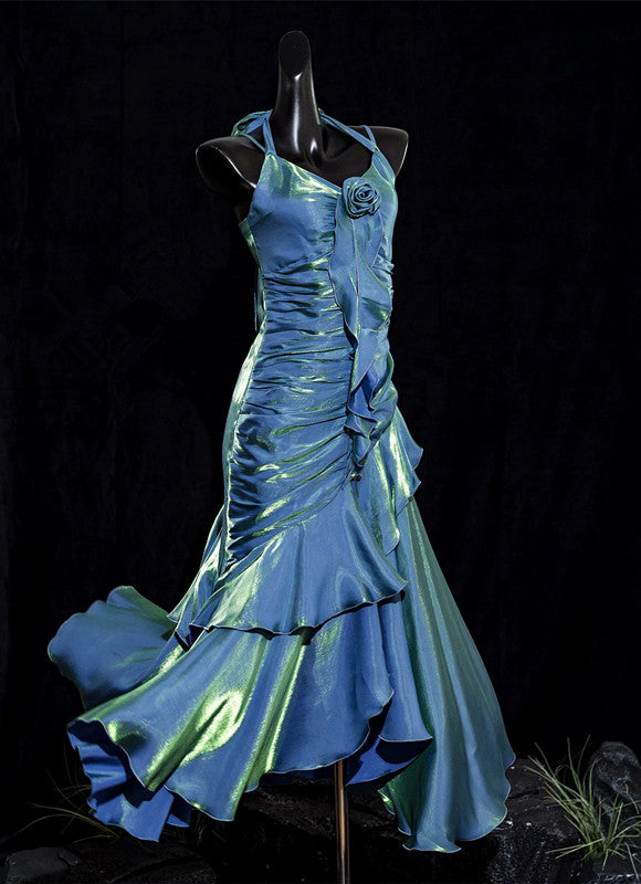 Vintage Mermaid Spaghetti Straps Ice Blue Long Length Prom Dresses Birthday Outfits SD483