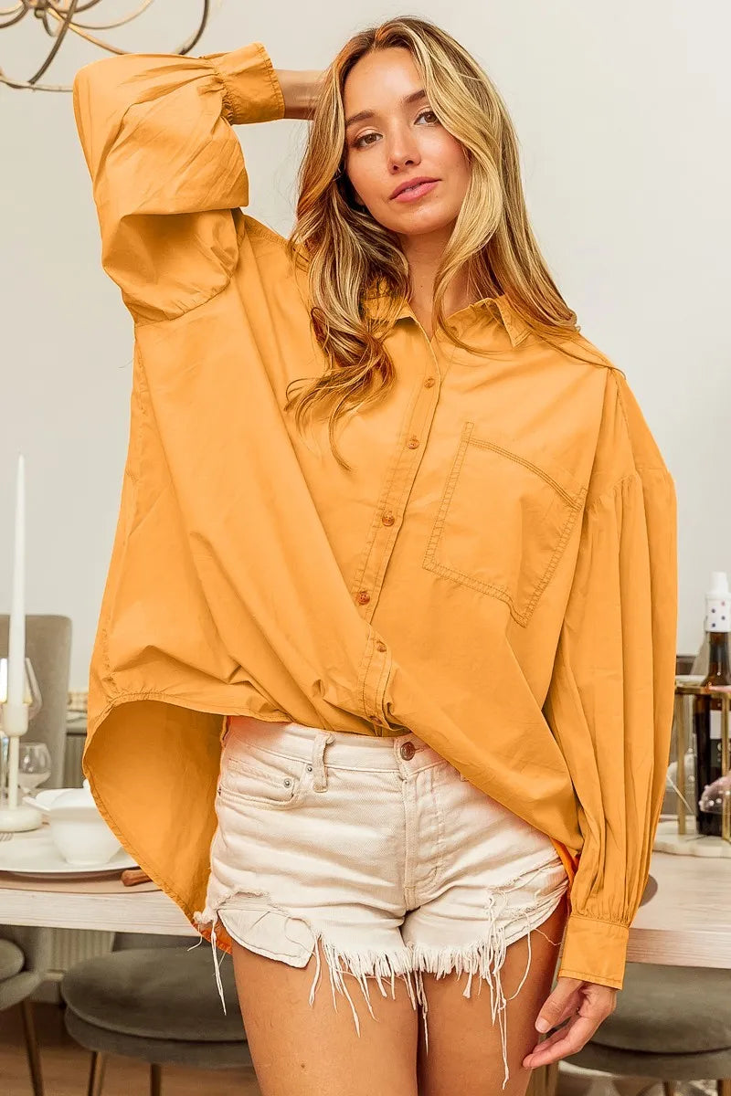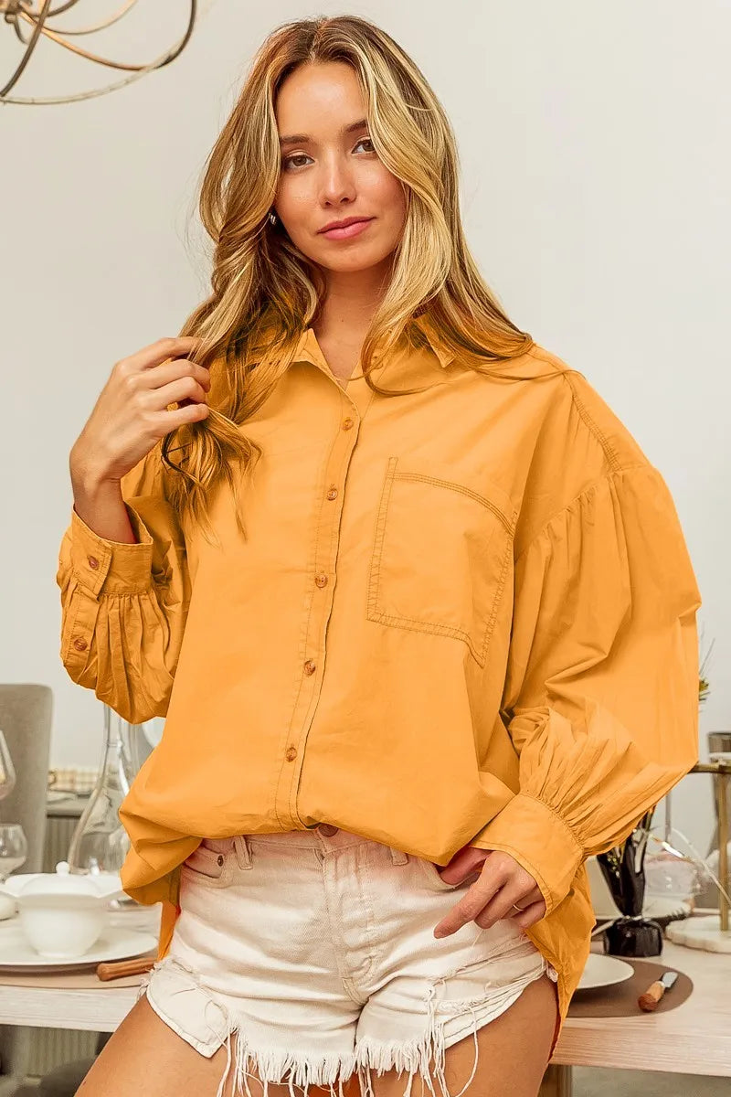 Vintage Washed Gathered Sleeve Oversized Shirt DJPT