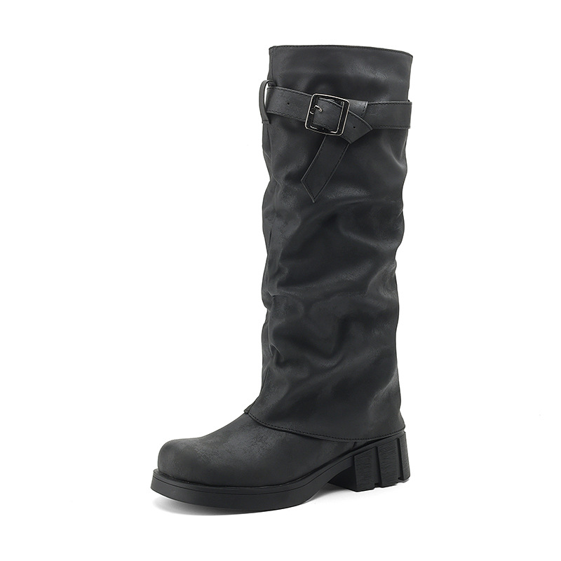 Western Boots Women Thin Boots Boots High-Heeled Boots High-Heeled Boots Belt Buckle Knight Boots Thick And Boots 40-43 Large Code High Quality Shoes