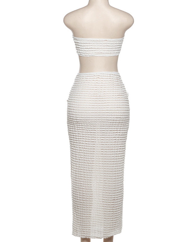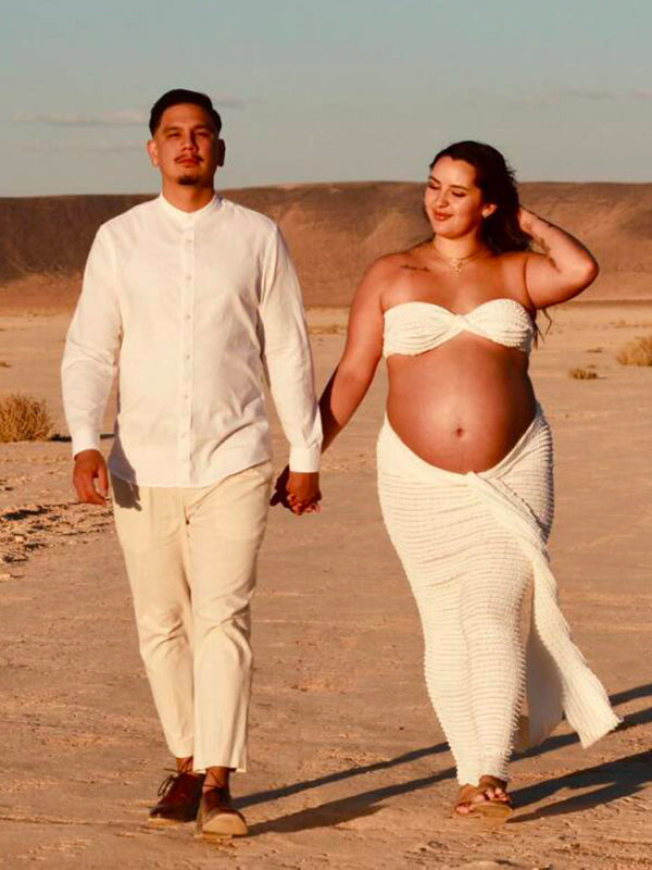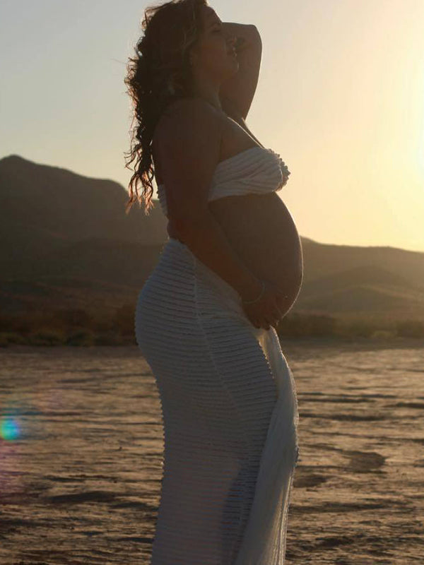 White Cross Chest Bandeau Backless Lace Crop Front Draped 2-in-1 Lace-up Bodycon Baby Shower Maternity Maxi Dress Maternity
