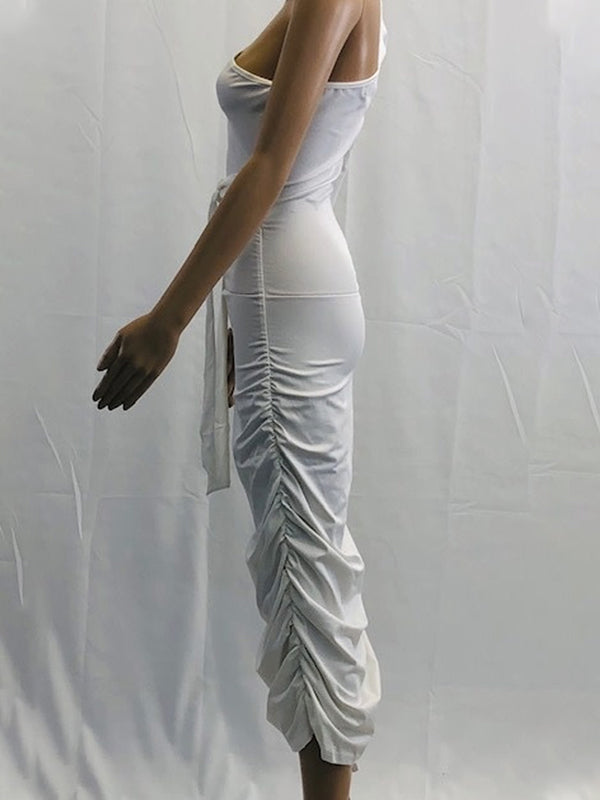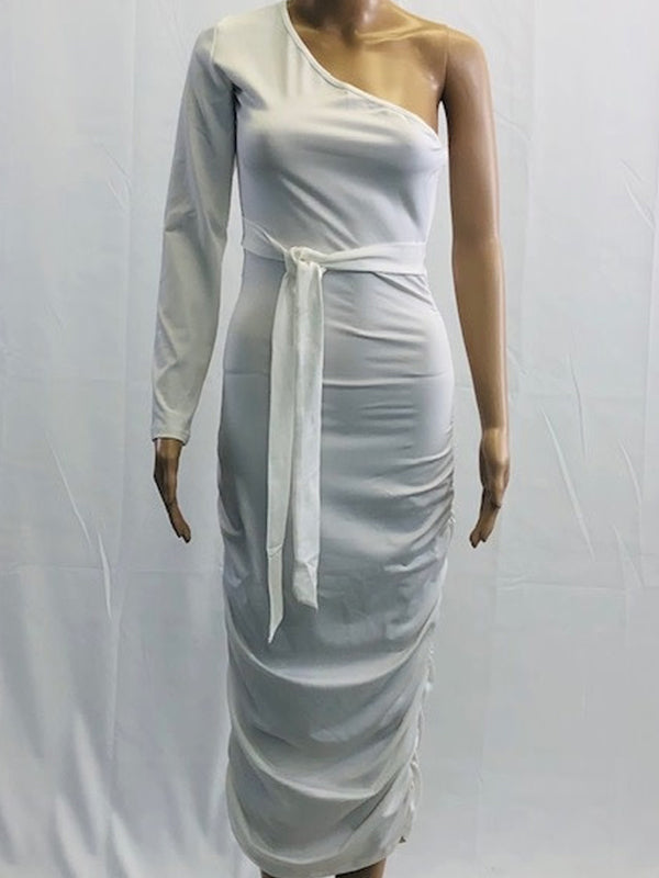 Features: Irregular Neck, Long' Sleeve, Ruffle, Sashes,Bodycon Midi Dress.It will fits your curves perfectly and makes you look elegant and chic,fitted like a glove