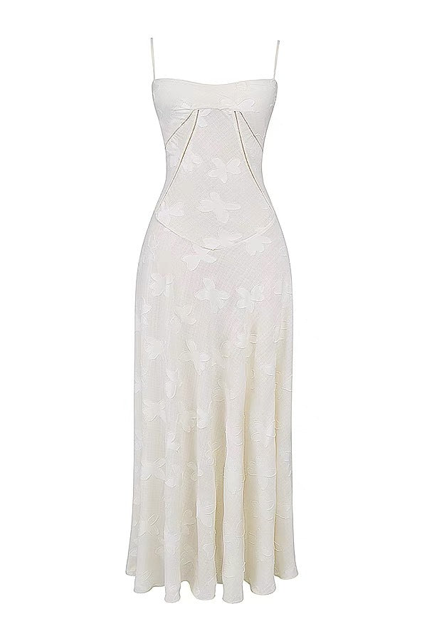 With The Same Retro Cream-Colored Sling Print-Deli Dress Sweet And Gentle Wind Birthday Evening Dress