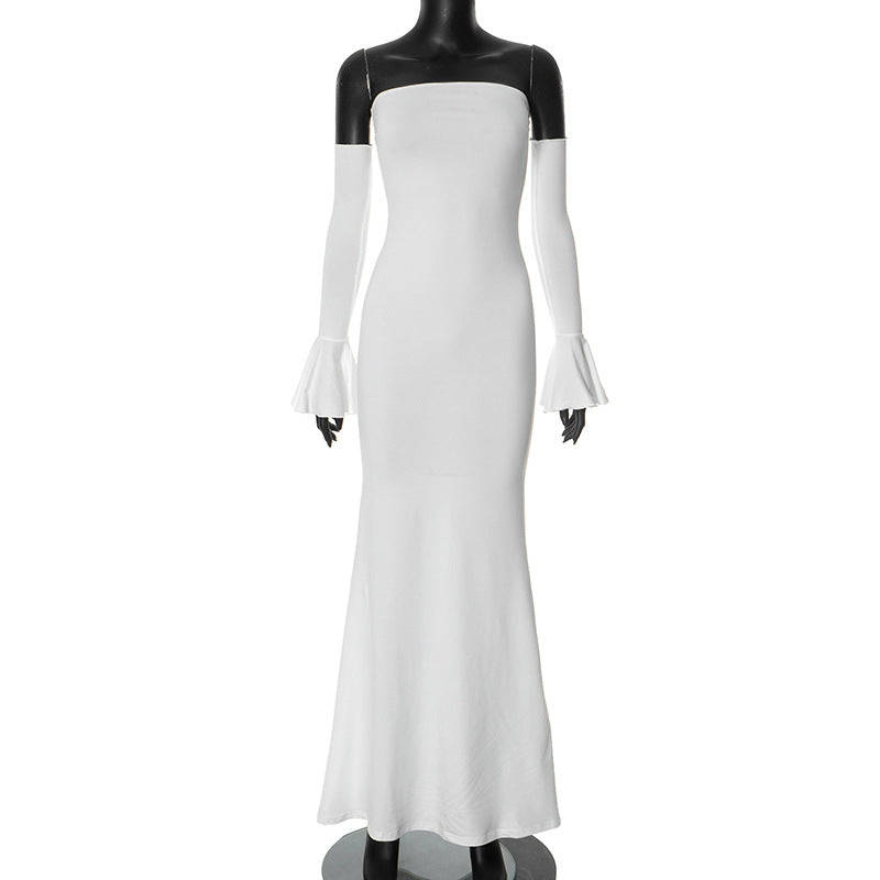 Women's Breasted Fishtail Sleeves To Repair Height Waist Dress DJPT