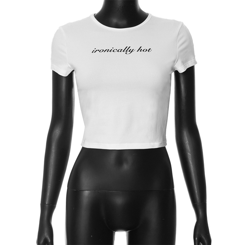 Women's Clothing 2024 New Solid Color Collar Repair Body Umbilical Tops Print Bare Back Short Sleeves DJPT