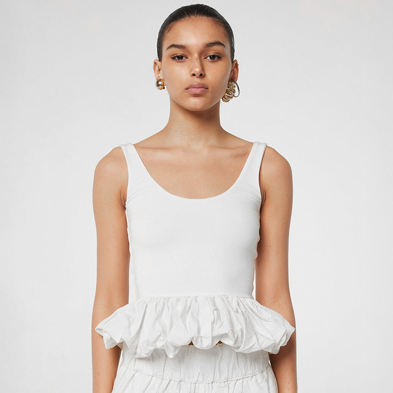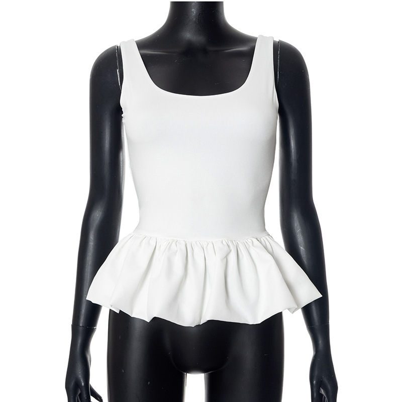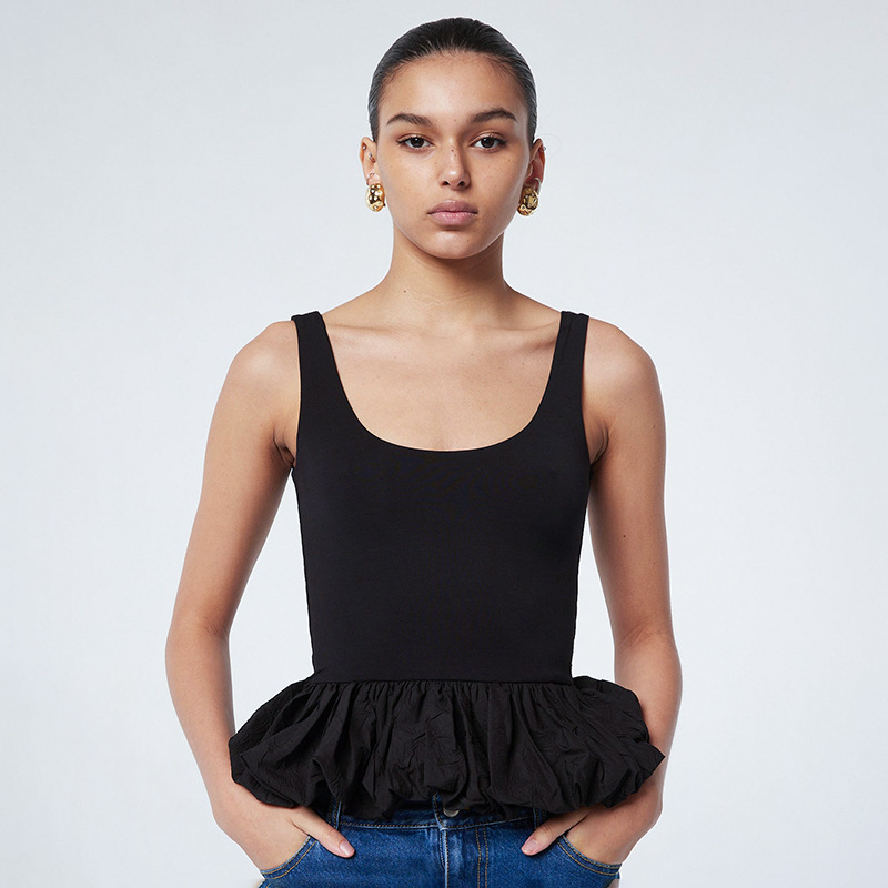 Women's Clothing 2024 Summer New Solid Color Sling Slings Bubble Vest DJPT