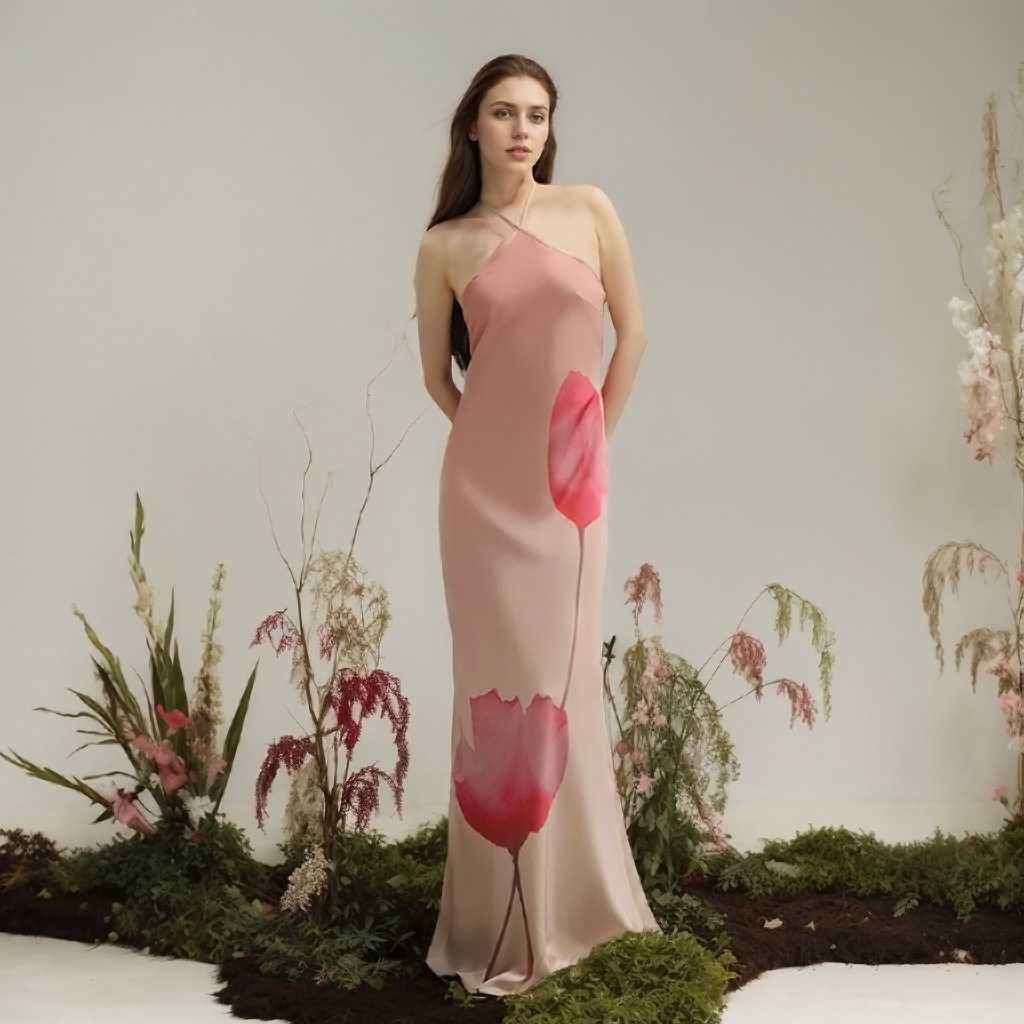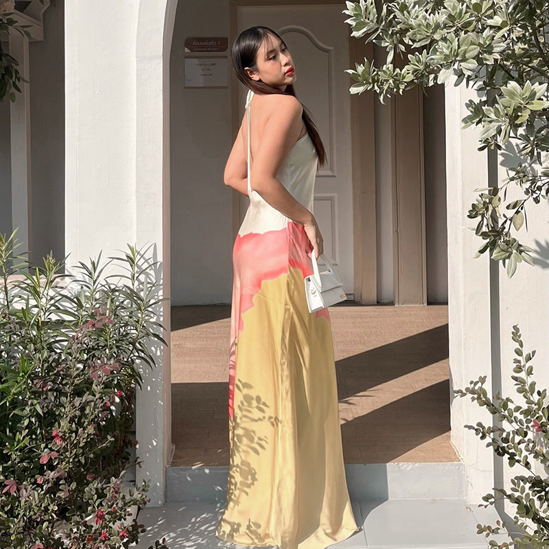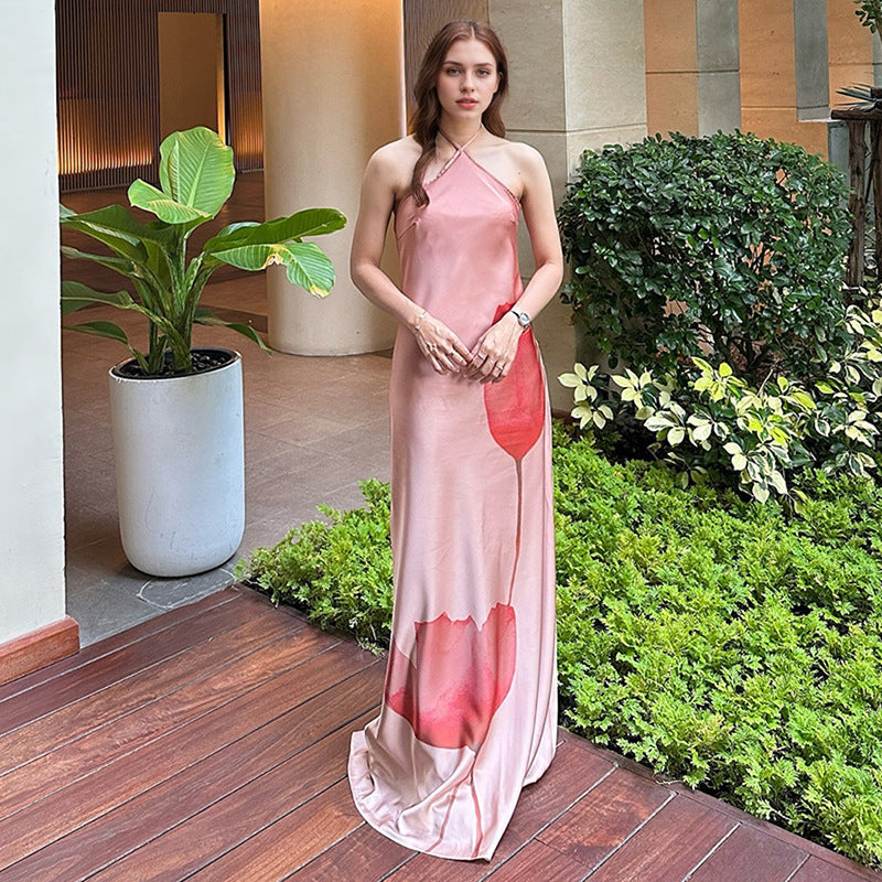Women's Clothing Hanging Neck Big Bare Back A Word Loose Print Dress DJPT