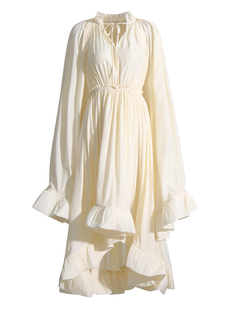 Women's Dress 2025 Spring New Women's Dresses 100-Fold Cloaked Leaf-Side Dress Girl