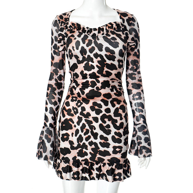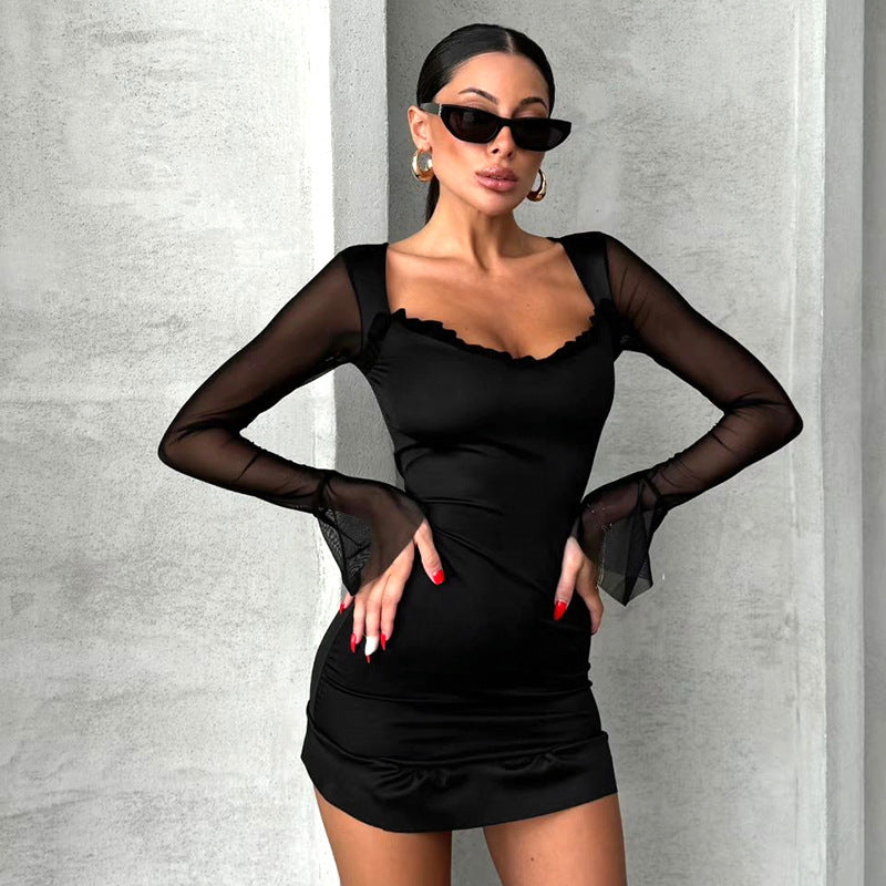 Women's Mesh Splicing Horn Long Sleeves To Close The Waist Sexy Ass Skirt DJPT