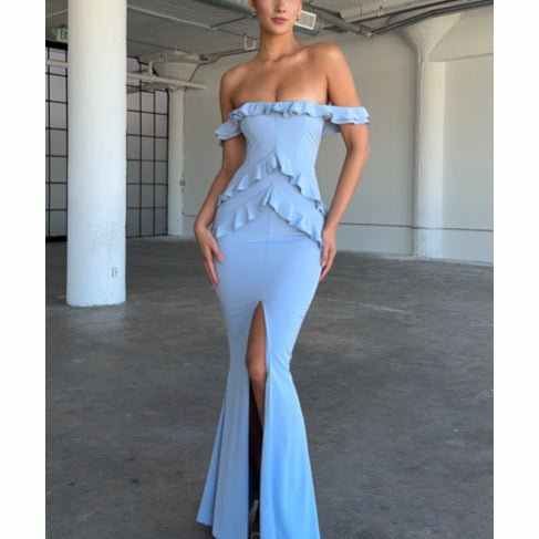Women's New Sexy Open Shoulder Leaf Dress HZ0628