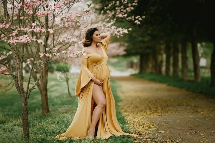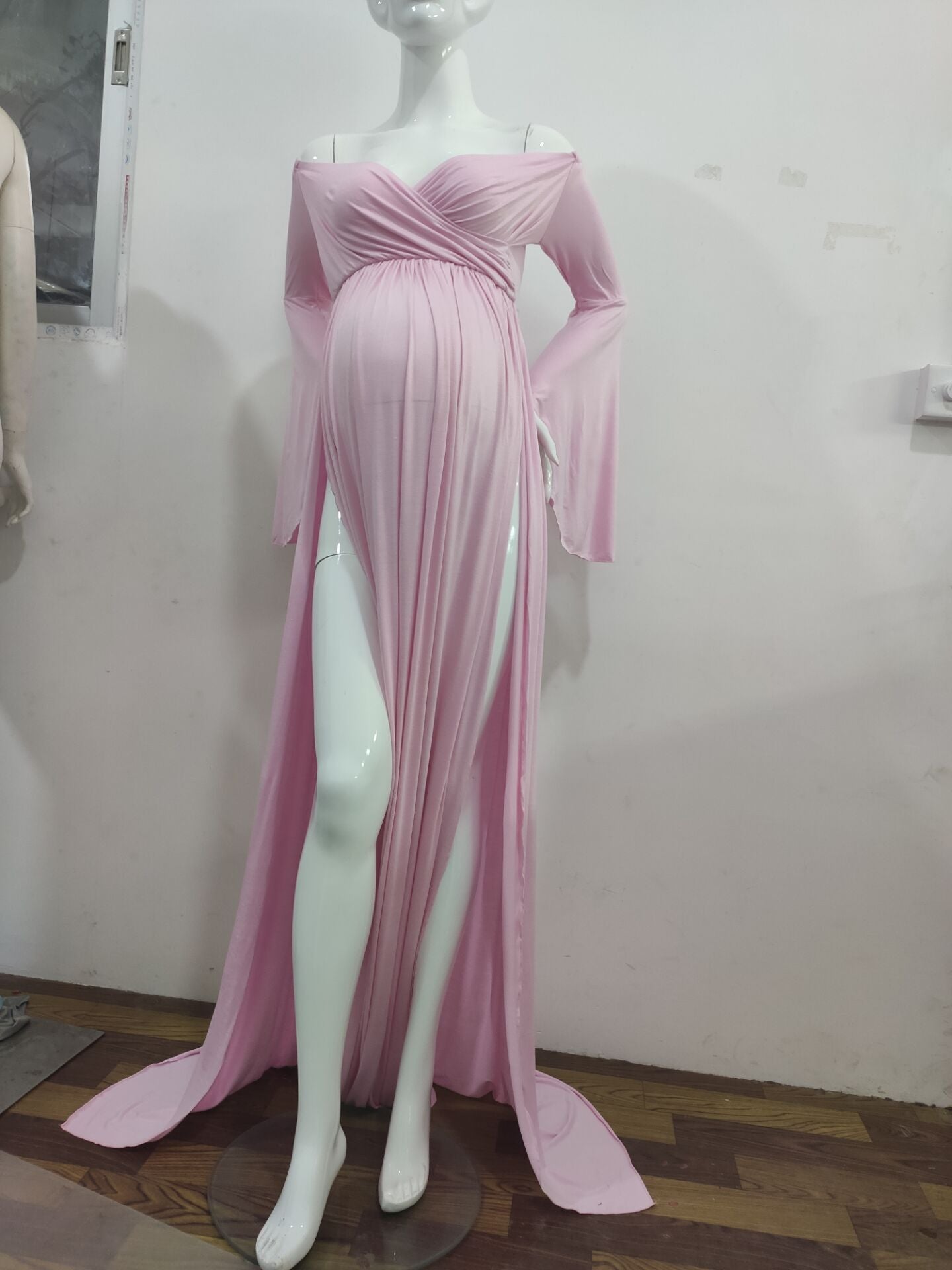 Women's Silk Cotton Pregnant Women Cross V-Neck Collar Tail Dress Photo Dress 1918 Maternity