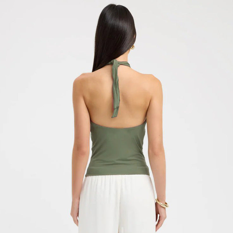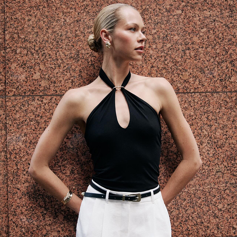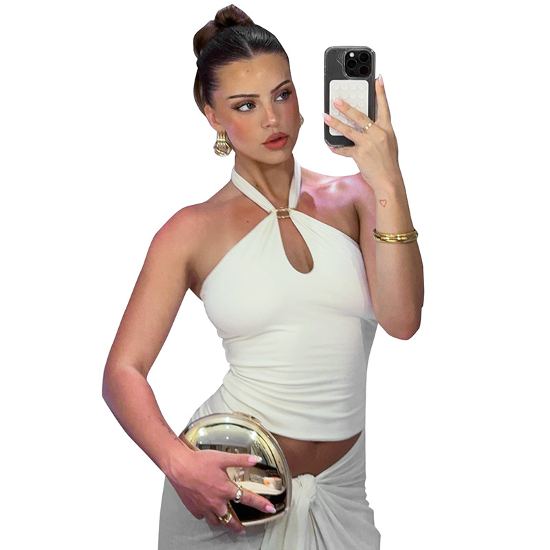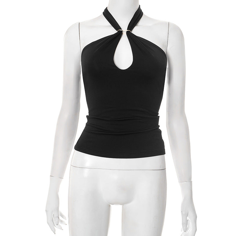 Women's Sleeveless Backs Piercing Hanging Neck Strapt Tight Vest Tops DJPT