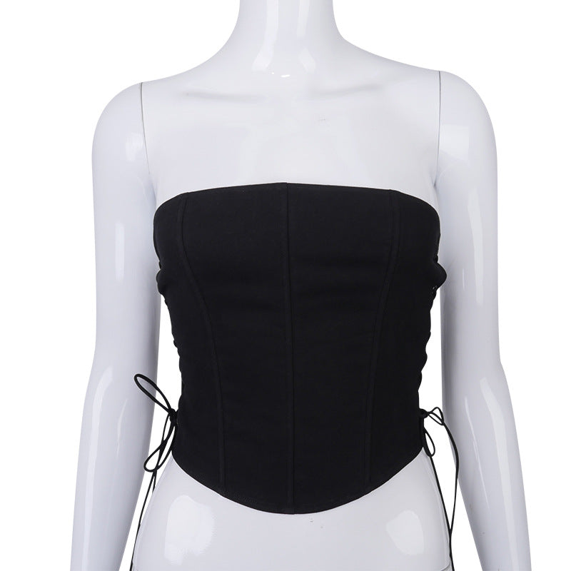 Women's Spring New Net Color Sleeveless Wrapped Chest Strapped Fish Bone Tops On Both Sides DJPT