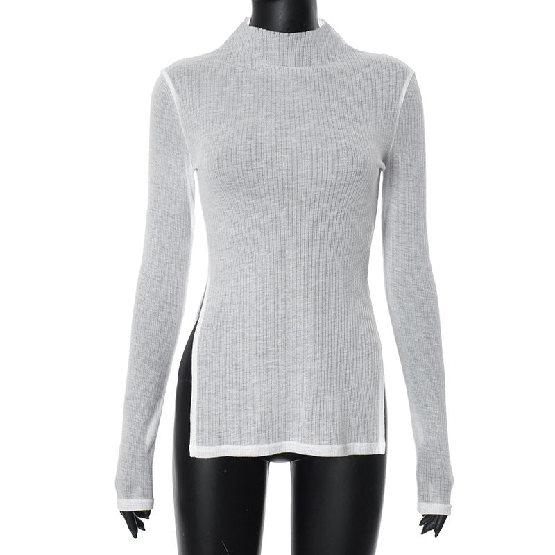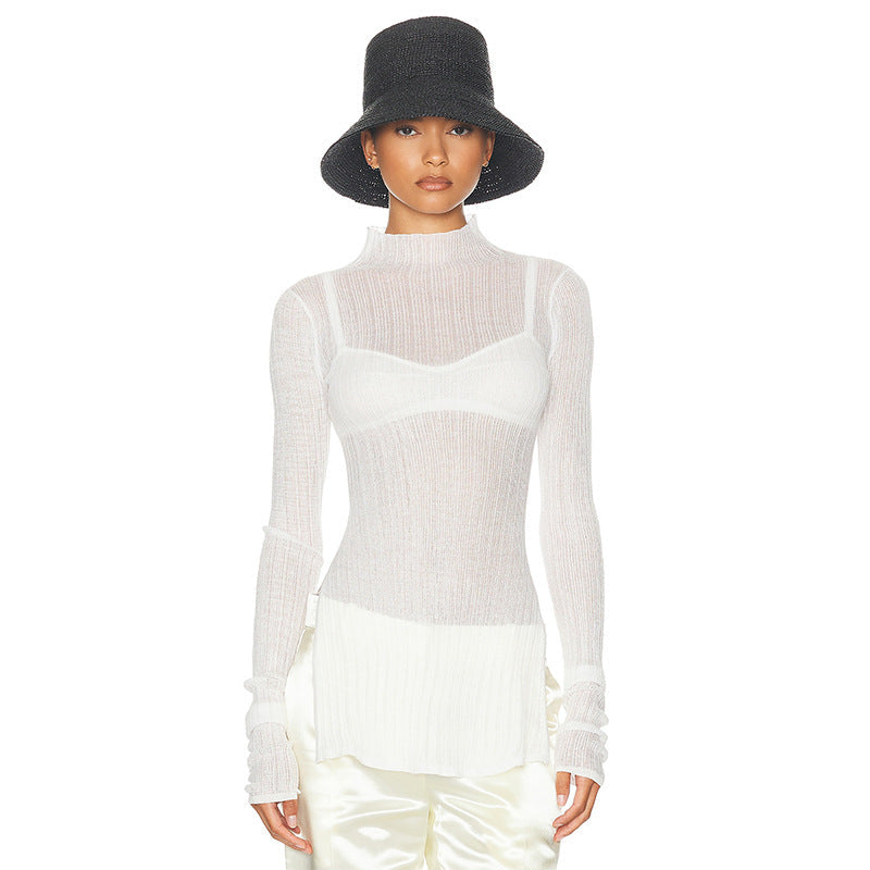 Women's Ultra-Thin Perspective Knitting High-Neck Long Sleeve Open Coat DJPT